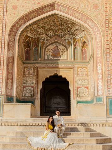"From Delhi’s heritage streets to Agra’s timeless Taj, and Jaipur’s royal forts, let your love story unfold in grandeur"